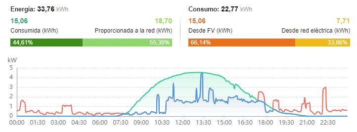 Instalación ejecutada, legalizada y el cliente ya está compensado excedentes con la comercializadora. Alcanzando un 66% de reducción de consumo eléctrico en el hogar.